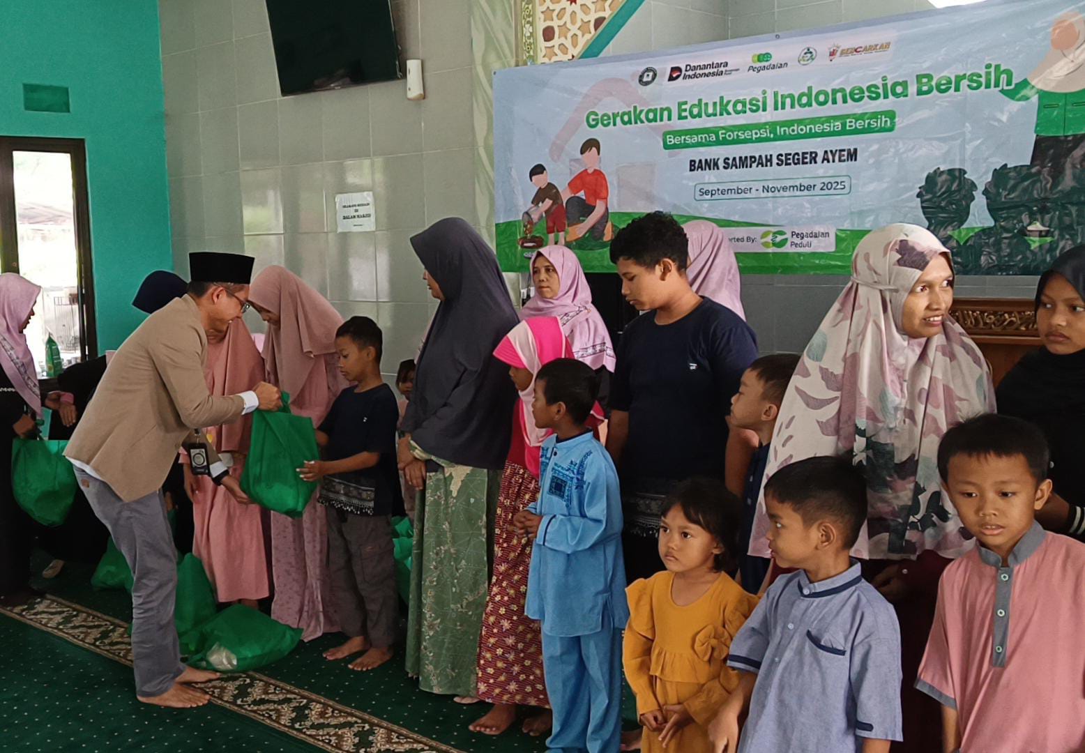 chakra-news.com // Bekasi – PT Pegadaian Kanwil VIII Jakarta 1 bersama FORSEPSI dan Bank Sampah Seger Ayem mengadakan Gerakan Edukasi Indonesia Bersih dengan tema “Menabung Dalam Perspektif Syariah” dan santunan kepada para warga jamaah mesjid AL-IKHLAS di Bekasi Timur Regensi 5 Cluster Fargesia RW. 012 Kel. Sumur Batu Kec. Bantar Gebang, Minggu (21/9).