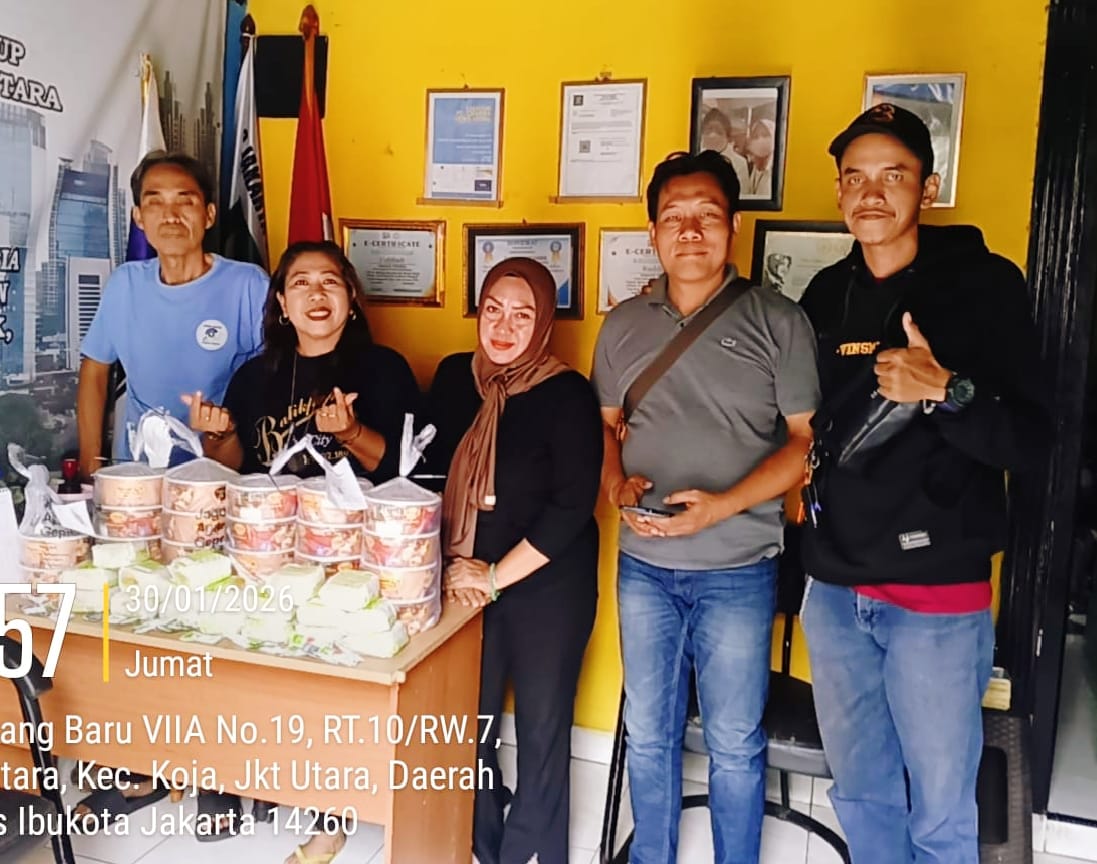chakra- news.com// Jakarta Utara Jumat 30/ 1 / 2026 , Persaudaraan Wartawan Jakarta Utara (PWJU) kembali menggelar kegiatan sosial bertajuk Jumat Berkah dengan membagikan makanan berupa Ayam Keprabon dan burger kepada masyarakat serta para pengemudi ojek online (ojol) yang melintas di depan Kantor PWJU, Jalan Walang Baru Raya No. 17E, Kelurahan Tugu Utara, Kecamatan Koja, Jakarta Utara, Jumat.